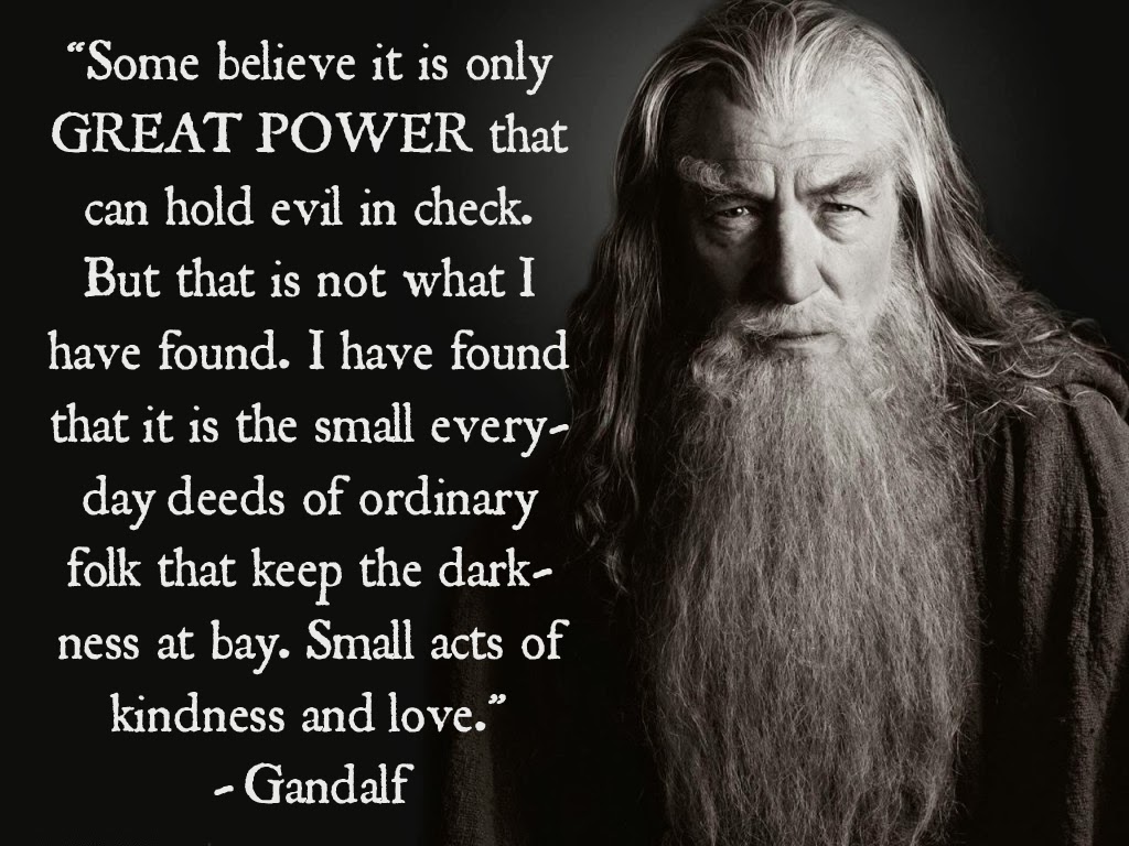 "It's like the great stories, Mr. Frodo. . .Those were the stories that stayed with you. That meant something, even if you were too small to understand why. But I think I do, Mr. Frodo, I do understand. . . . .Folk in those stories had lots of chances of turning back, only they didn't. They kept going. Because they were holding on to something." --Samwise Gamgee